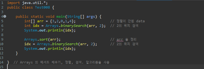 int idx = Arrays.binarySearch(arr, 2); // 2의 위치 검색