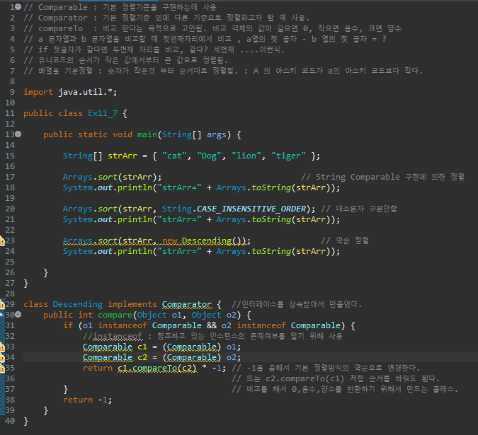 Arrays.sort(strArr, new Descending()); // 역순 정렬
