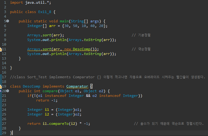 Arrays.sort(arr, new DescComp()); // 역순정렬