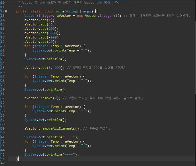 Vector<Integer> aVector = new Vector<Integer>(); // 최대는 5개지만 초과하면 5개씩 늘어난다.