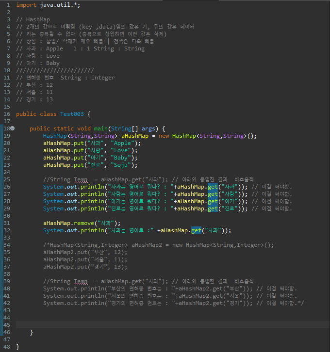 System.out.println("서울의 면허증 번호는 : "+aHashMap2.get("서울")); // 이걸 써야함.