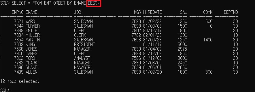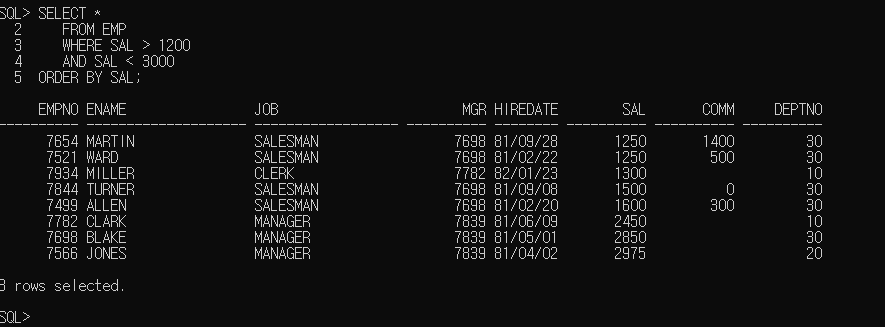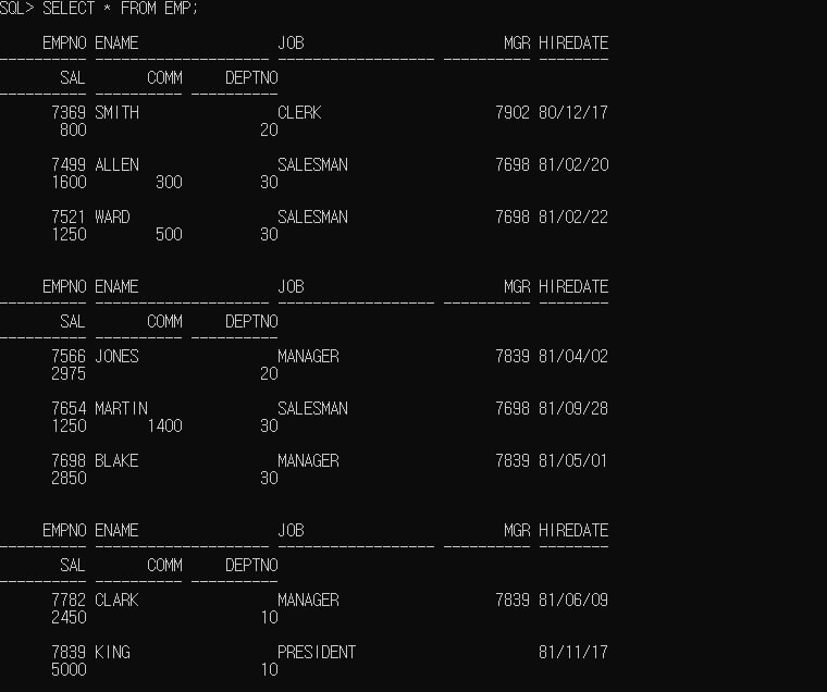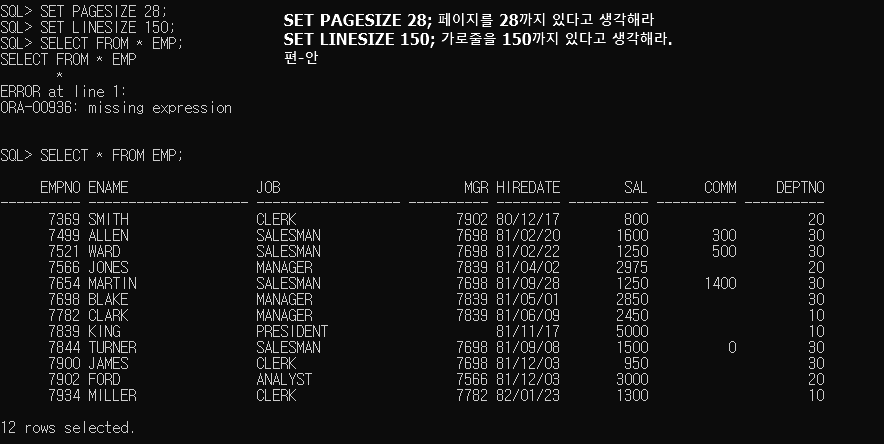 SET LINESIZE 150;