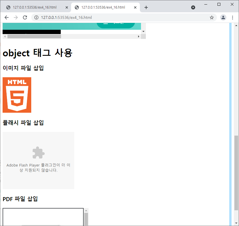 - 이미지, 오디오, 비디오, 태그로 지원하지 않는 파일을 웹 문서에 포함하기 위해 사용