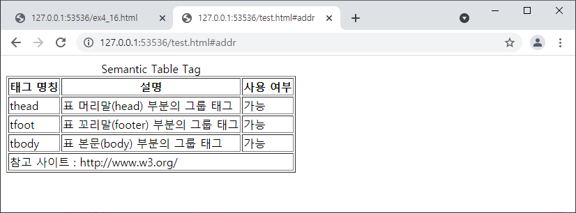 <td>표 꼬리말(footer) 부분의 그룹 태그</td>