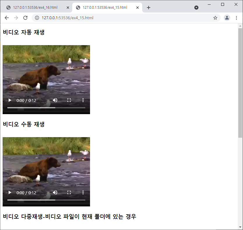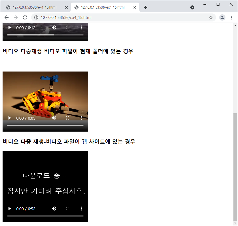 <h3>비디오 다중 재생-비디오 파일이 웹 사이트에 있는 경우</h3>