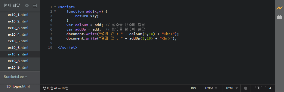 var calSum = add; // 함수를 변수에 할당
