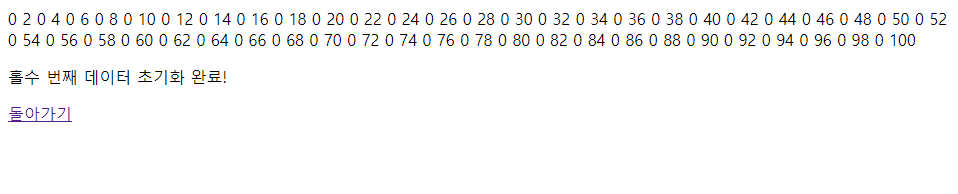 document.write("<p>홀수 번째 데이터 초기화 완료!" + "</p>");