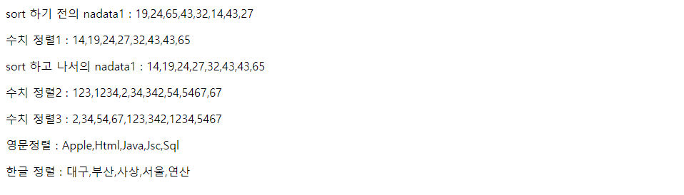 document.write("수치 정렬2 : " + nadata2.sort() + "<p/>");