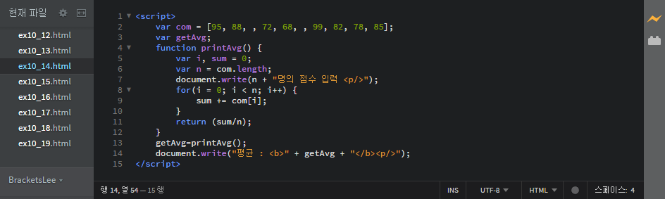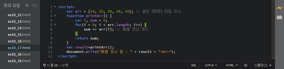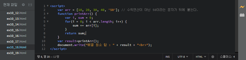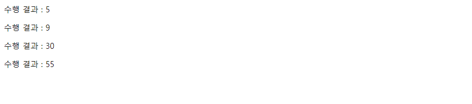 document.write("수행 결과 : " + sum + "<p/>");