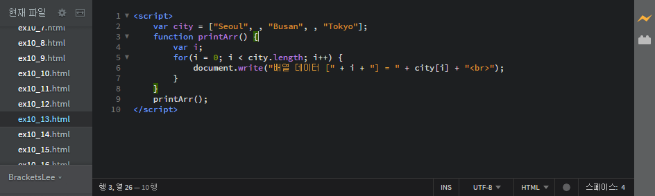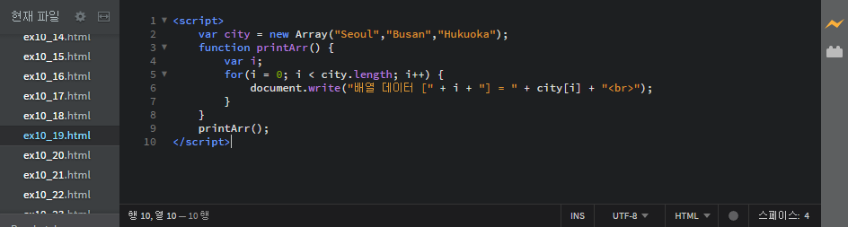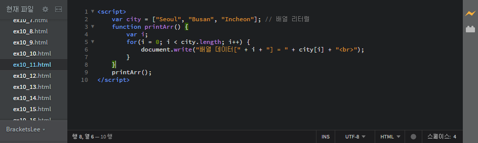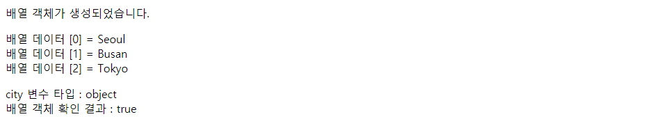 var city = ["Seoul", "Busan", "Incheon"]; // 배열 리터럴