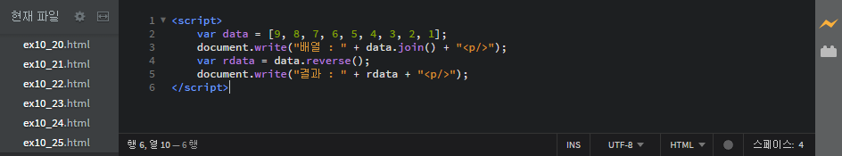 - 배열 원소의 순서를 반대로 정렬
