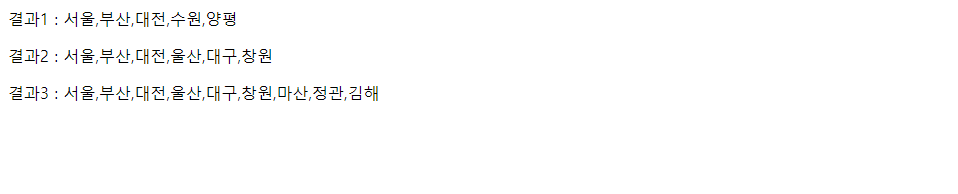 var data1 = city1.concat("수원", "양평");