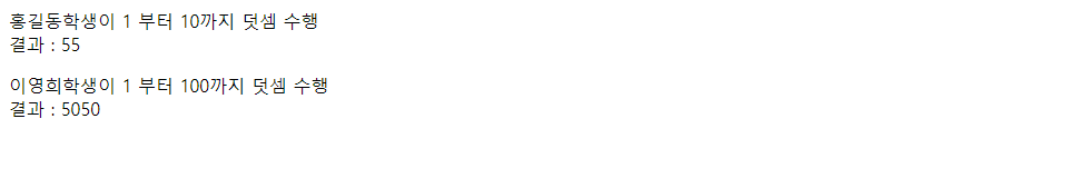 document.write(name + " 학생이 1부터 " + n + "까지 덧셈 수행<br>");