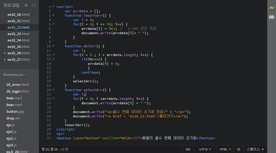 <button type="button" onclick="delArr()">배열의 홀수 번째 데이터 초기화</button>