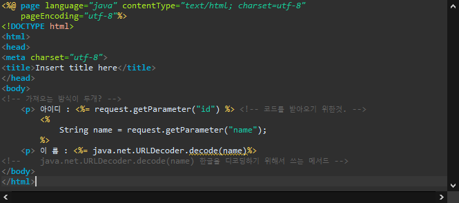 <!-- java.net.URLDecoder.decode(name) 한글을 디코딩하기 위해서 쓰는 메서드 -->