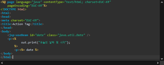 useBean 액션 태그에 Date 클래스를 사용하여 현재 날짜와 시간 출력