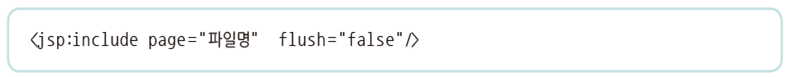 - 현재 JSP 페이지 내에 포함할 내용을 가진 외부 파일명