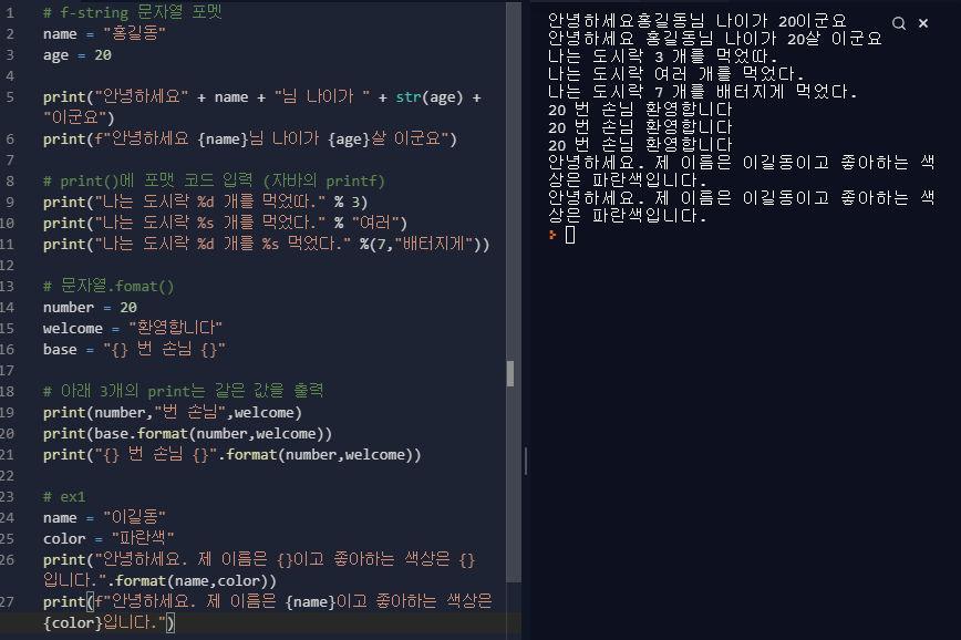 # f-string 문자열 포멧