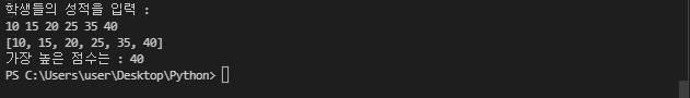 student_scores = input("학생들의 성적을 입력 :\n").split()
