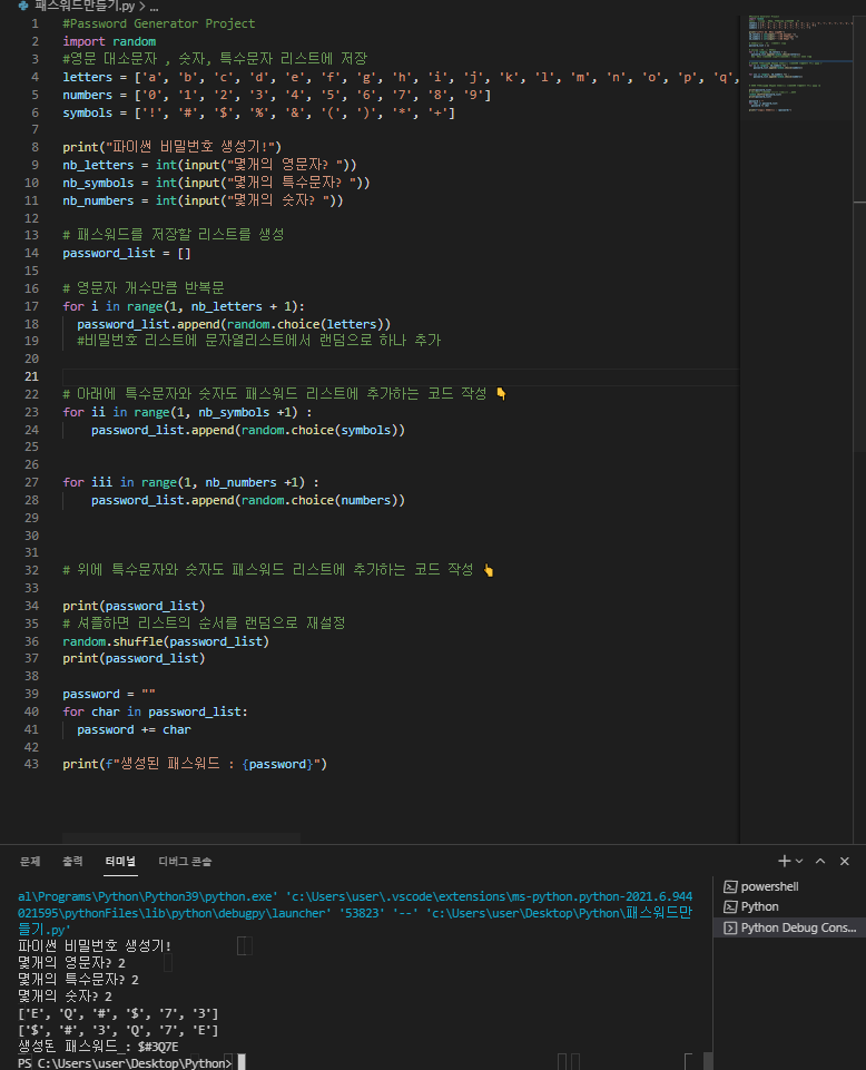print(f"생성된 패스워드 : {password}")728x90