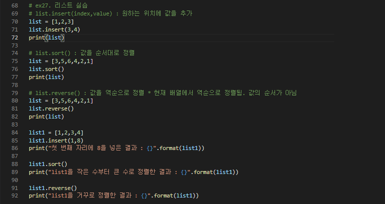# list.sort() : 값을 순서대로 정렬
