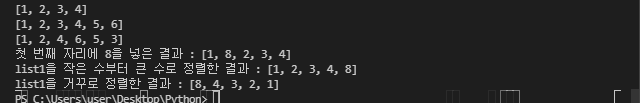 print("첫 번째 자리에 8을 넣은 결과 : {}".format(list1))