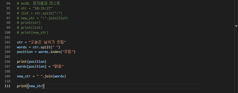 # ex28. 문자열과 리스트