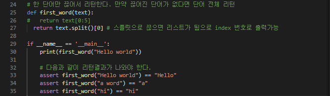# return text.split()[0] # 스플릿으로 끊으면 리스트가 됨으로 index 번호로 출력가능