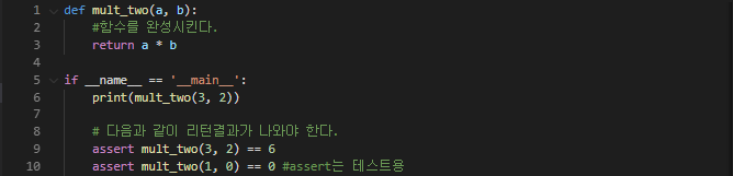 # assert mult_two(1, 0) == 0 #assert는 테스트용