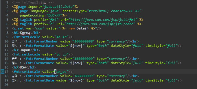<fmt:setLocale value="ko_kr"/>