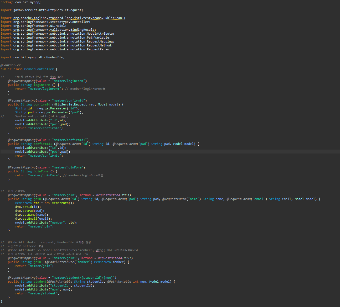 // @ModelAttribute >> model.addAttribute("member", dto); 이게 자동으로실행된거임