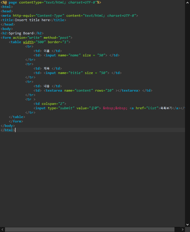 <input type="submit" value="입력"> <a href="list">목록보기</a></td>