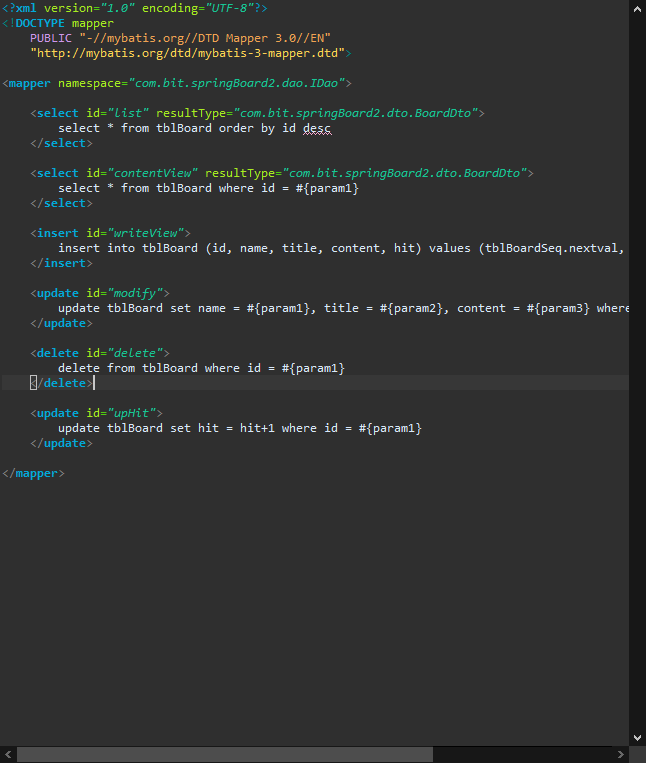 <mapper namespace="com.bit.springBoard2.dao.IDao">