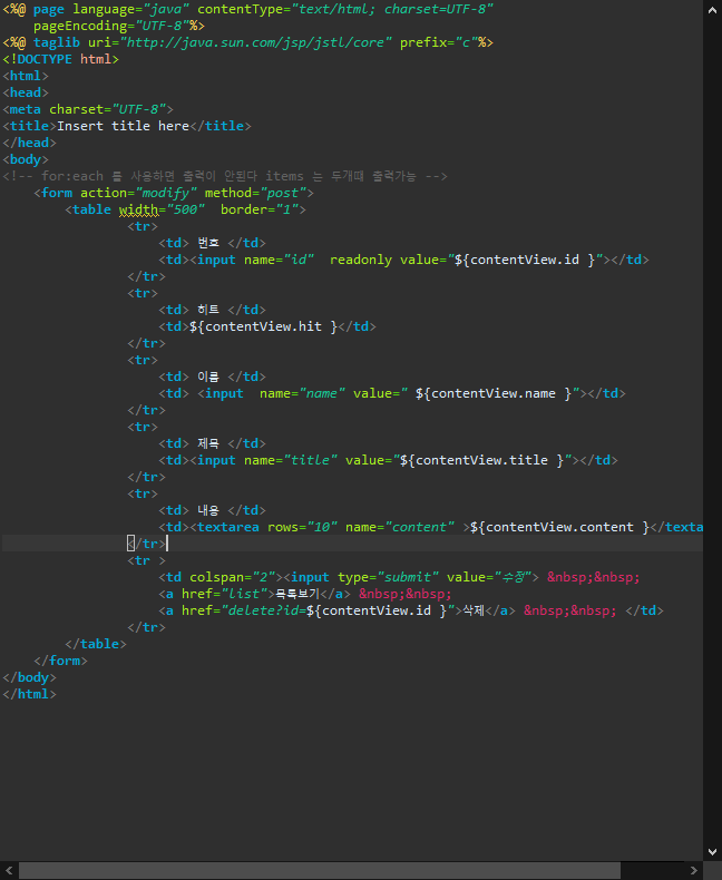 <a href="delete?id=${contentView.id }">삭제</a> </td>