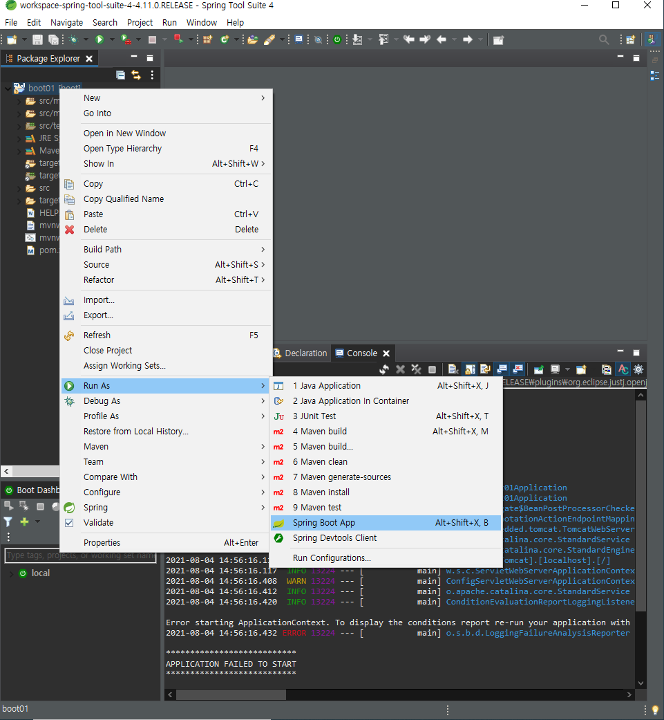** springBoot은 톰캣이 내장되어있다.