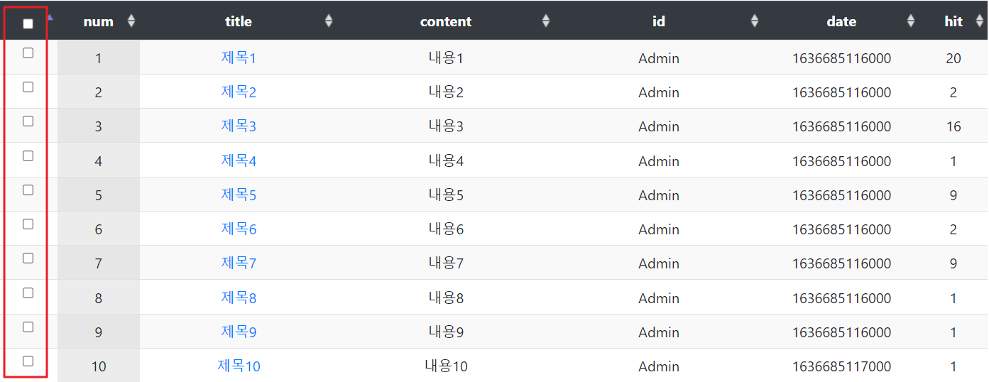 체크박스를 없애면 빈 컬럼이 됨ㅇㅇ