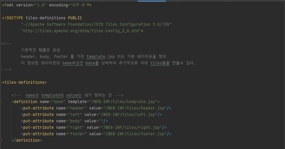 4. tiles.xml 에 설정을 다 했으면, tiles directroy 를 만들어서 (아니면 원하는 자리에 설정해서 넣어줘도 무방)