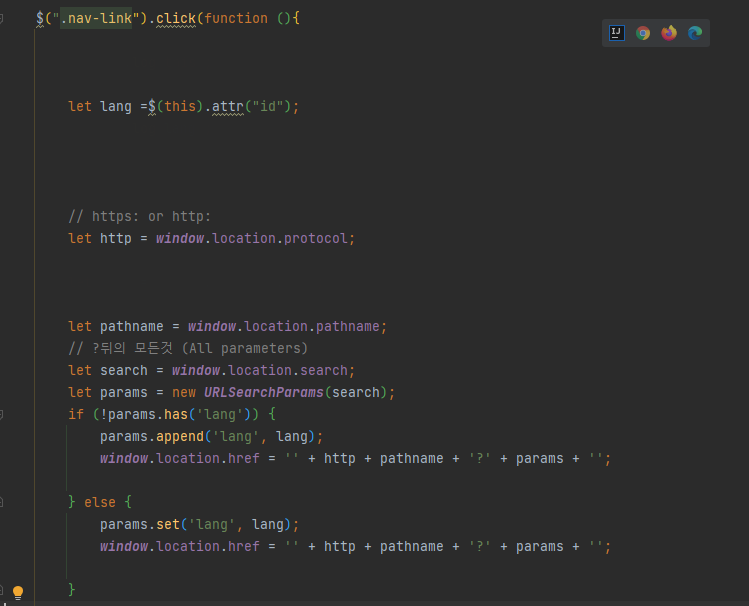 예를들어 현재 영어인상태에서 영어를 한번 더 누른다면 praram에 lang=en이 하나 더 붙어버리는 끔찍한 상황이 발생한다..