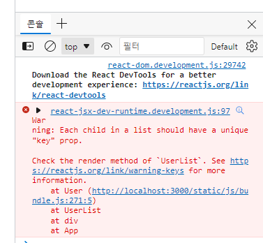 리액트에서 배열을 렌더링 할 때에는 key 라는 props 를 설정해야 한다.
