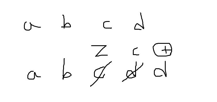 기존의 c 가 z 로 바뀌고 d 는 c 로, 맨 마지막에 d가 새로 삽입된다.