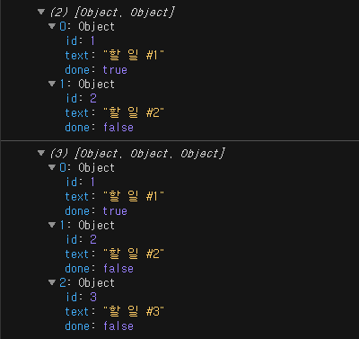// 불변성을 지켜주기 위해서 spread 연산자를 사용