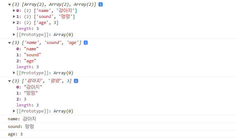 Object.entries : [[key, value][key, value]] 반환