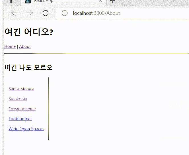 - 부모의 화면까지 렌더링 되고 있어서 부모인 App 의 화면만 나옴