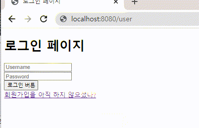 /user 에 간 후 로그인페이지에서 로그인을 하면