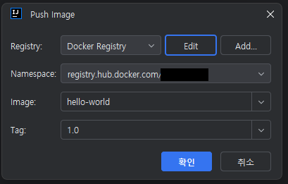 네임스페이스도 자동으로 맞춰준다. (도커허브에서 레포지토리 생성해야함)
