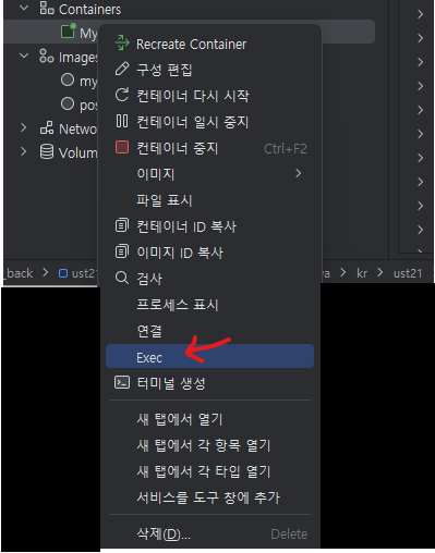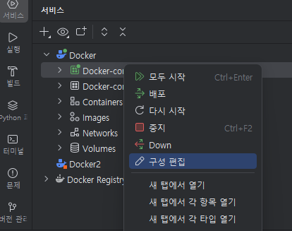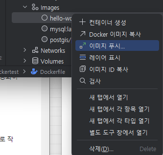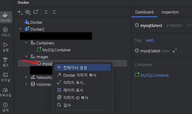 컨테이너 생성은 이미지를 우클릭하고 컨테이너 생성을 누른다