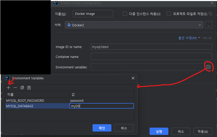 - 컨테이너가 시작될 때 데이터베이스를 생성할 MYSQL_DATABASE 환경 변수 지정
