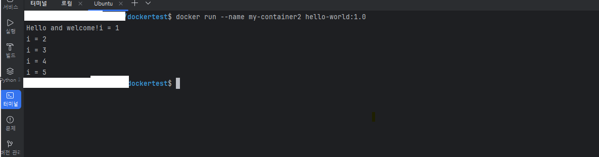 또 다른 hello world 컨테이너를 실행하고 이름을 my-container2로 지정 하고 런
