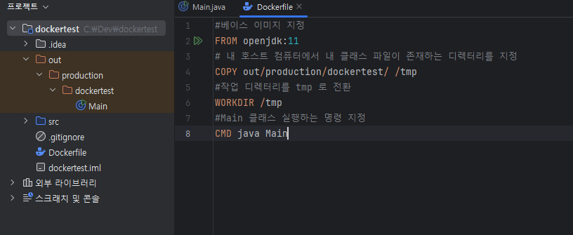 COPY 명령어를 쓰려면 프로젝트 파일을 이미지에 복사해야함(내 호스트 컴퓨터에서 내 클래스 파일이 존재하는 디렉터리를 지정해야함)