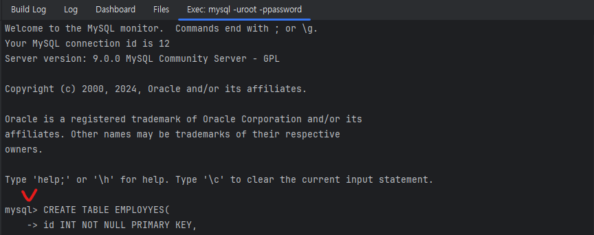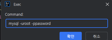 사용자와 비밀번호를 전달하는 mysql 명령입력